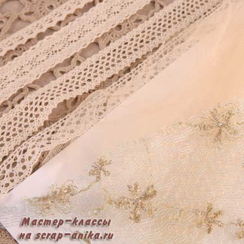 В третьих, я выбираю дополнительный декор - тонкие кружева, сеточки, вышивку, органзу, тонкие ткани, хлопковые и льняные веревочки, гербарий и многое другое.
