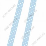 Ленточка узкая нежно-голубая в белый горошек. Ширина 10 мм. Цена за 3 метра.