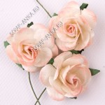 Розочки. Цвет - белый-персиковый. 2,5 см. Имеют проволочный стебелек. Цена за 3 шт.