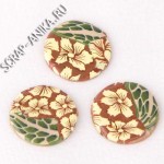 Украшения круглые. Цвета: желтый, шоколад, зелёный. Цветы и листья.