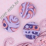 Медальоны круглые. Цвет - светло-сиреневый, розовый, фиолетовый.  Детали ручной работы из полимерной глины. Для них разработана бумага. Размер медальона ок. 2 см. Цена за 1 шт.
