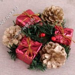 Композиция праздничная из золотистых шишек и подарочных коробочек. Размер в диаметре ок. 10 см. Цена за упаковку.
