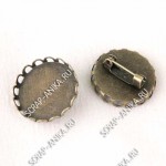 Основа для броши с платформой и ажурным бортиком, диаметр 19 мм, железо, цвет бронза, р-р 21.5x3.5мм, цена за 1 шт.