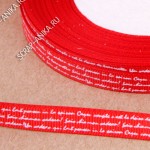 Лента репсовая с текстом, 10 мм. Цвет красный+белый