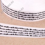 Лента репсовая с текстом, 20 мм. Цвет белый+черный.