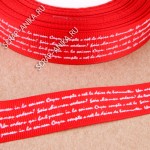 Лента репсовая с текстом, 20 мм. Цвет красный+белый.