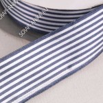 Лента атласная с рисунком (полоска), цвет серо-голубой. Ширина 25 мм. Цена за 1 м.