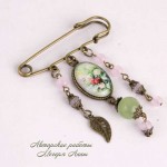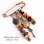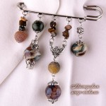 Брошь - булавка 78. Камни: агат, вены дракона, змеевик. Бусины ручной работы полимерная глина. Сделана в единственном экземпляре. Размер булавки 7,5х1,5 см. Длина самой большой подвески ок. 7 см.