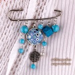 Брошь - булавка 80. Камни:бирюза. Бусина ручной работы полимерная глина. Сделана в единственном экземпляре. Размер булавки 7,5х1,5 см. Длина самой большой подвески ок. 5,5 см.
