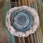 Брошь в бохо-стиле - 3. Размер ок. 4,5 см. Ручная работа. Сделана в единственном экземпляре. Использованные материалы: полимерная глина (техника "рваный край"), ткани, кружева. Область применения очень широкая: можно крепить на пальто, куртку, платье, блу
