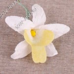 Орхидея, цвет белый+желтый, диаметр ок. 4см. Длина стебля ок 6 см. Цена за 1 шт.