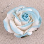 Роза 5 см. Цвет белый+голубой. Имеет проволочный стебелек. Высота цветка ок. 2,5 см. Цена за 1 шт.