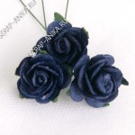 Роза 5 см. Цвет синий. Имеет проволочный стебелек. Высота цветка ок. 2,5 см. Цена за 1 шт.