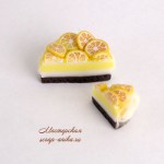 Половина торта+пирожное "Лимонный мусс" (миниатюра). Полимерная глина, ручная работа. Диаметр торта ок. 2 см, размер пирожного ок. 1 см. Цена за комплект.ВНИМАНИЕ! Маленький размер. Не рекомендуется для игры детям до 3-х лет.