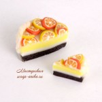 Половина торта+пирожное "Цитрусовый мусс" (миниатюра). Полимерная глина, ручная работа. Диаметр торта ок. 2 см, размер пирожного ок. 1 см. Цена за комплект.ВНИМАНИЕ! Маленький размер. Не рекомендуется для игры детям до 3-х лет.
