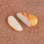 Половина батона с куском (миниатюра). Полимерная глина, ручная работа. Размер батона ок. 15 мм. Цена за 1 шт. ВНИМАНИЕ! Маленький размер. Не рекомендуется для игры детям до 3-х лет.