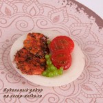 Отбивные с помидорами гриль (миниатюра). Масштаб 1:12. Полимерная глина, ручная работа. Размер тарелочки 2 см. ВНИМАНИЕ! Маленький размер. Не рекомендуется для игры детям до 3-х лет.