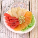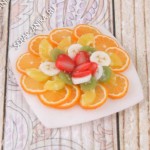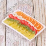 Нарезка фруктовая на прямоугольном блюде (миниатюра). Масштаб 1:12. Полимерная глина, ручная работа. Размер блюда 3,5х2,5 см. ВНИМАНИЕ! Маленький размер. Не рекомендуется для игры детям до 3-х лет.