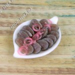 Буженина на тарелочке (миниатюра). Масштаб 1:12. Полимерная глина, ручная работа. Размер блюда 2,5х1,7см. ВНИМАНИЕ! Маленький размер. Не рекомендуется для игры детям до 3-х лет.