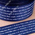 Лента репсовая с текстом, 40 мм. Цвет синий+белый.