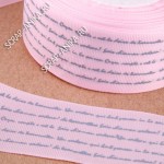 Лента репсовая с текстом, 40 мм. Цвет светло-розовый+серый.