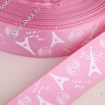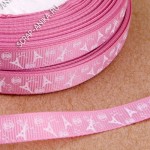 Лента репсовая с эйфелевыми башнями, 20 мм. Цвет пыльная роза+белый. Ширина 20 мм. Цена за 1 м.