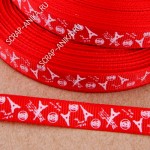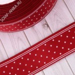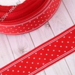 Лента репсовая, цвет ярко-красный, рисунок-звездочка. Ширина 25 мм.