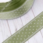 Лента репсовая, цвет светло-оливковый, рисунок-звездочка. Ширина 25 мм. Цена за 1 м.