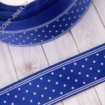 Лента репсовая, цвет синий, рисунок-звездочка. Ширина 25 мм.