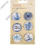 Набор топсов (фишек) для скрапбукинга "Голландские мотивы", диаметр 25 мм, в упаковке 6 шт.