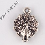 Подвеска Павлин. Цвет серебро. Металл. Размер 17х15 мм. Цена за 1 шт.