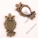 Подвеска-сеттинг Сова литьё, цвет бронза, 44х23х6мм, отв-е 2мм, сеттинг размер 17х19 мм. цена за 1шт.