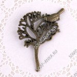 Подвеска Птичка на дереве, односторонняя, литьё, цвет бронза, 55х72х3.5мм, отверстие 2мм, цена за 1 шт.