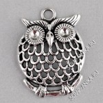 Подвеска Совушка. Цвет серебро. Размер 35х25 мм. Цена за 1 шт.