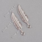 Подвески Перышки, цвет серебро. Размер 30х8 мм. Цена за 2 шт.
