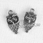 Подвеска Сова. Цвет серебро. Размер 20х12 мм. Цена за 1 шт.