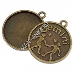Подвеска с сеттингом Близнецы, сеттинг 25мм, сплав, цвет бронза, р-р 32х28х3мм, отв-е 2мм, цена за 1 шт.