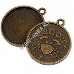 Подвеска с сеттингом Рак, сеттинг 25мм, сплав, цвет бронза, р-р 32х28х3мм, отв-е 2мм, цена за 1 шт.