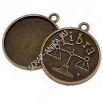 Подвеска с сеттингом Весы, сеттинг 25мм, сплав, цвет бронза, р-р 32х28х3мм, отв-е 2мм, цена за 1 шт.
