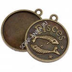Подвеска с сеттингом Рыбы, сеттинг 25мм, сплав, цвет бронза, р-р 32х28х3мм, отв-е 2мм, цена за 1 шт.