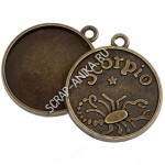 Подвеска с сеттингом Скорпион, сеттинг 25мм, сплав, цвет бронза, р-р 32х28х3мм, отв-е 2мм, цена за 1 шт.
