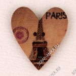Сердце. Винтаж - 11, пуговица, дерево, 27х25мм, цена за 1 шт.