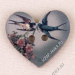 Сердце. Винтаж - 12, пуговица, дерево, 27х25мм, цена за 1 шт.