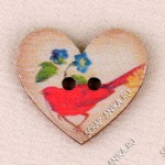Сердце. Винтаж - 9, пуговица, дерево, 27х25мм, цена за 1 шт.