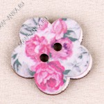 Шебби-шик. Цветок-2, пуговица, дерево, 25мм, цена за 1 шт.