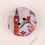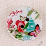 Пуговица с рисунком 25.29, дерево. Размер 25mm. Два отверстия. Цена за 1 шт.