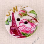 Пуговица с рисунком. 20.18, дерево. Размер 20 mm. Два отверстия. Цена за 1 шт.