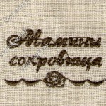Мотив №2-3. Надпись "Мамины сокровища" . Размер мотива 40х25 мм. Ткань - лен, с припусками. Цвет нитей выбираете самостоятельно. Если цвет не выбран, вышивка будет выполнена нитями цвета "темный шоколад".