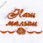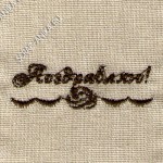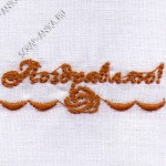 Мотив №2-5. Коллекция розочек с надписямМотив №2-5. Надпись "Поздравляю!". Общая площадь вышивки 45х15 мм. Ткань - лен. Цвет нитей выбираете самостоятельно. Если цвет не выбран, вышивка будет выполнена нитями цвета "темный шоколад". Вышивка выполнена с то