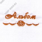 Мотив №2-13. Надпись "Альбом". Общая площадь вышивки 45х15 мм. Ткань - белый хлопок, с припусками по краям.. Цвет нитей выбираете самостоятельно. Если цвет не выбран, вышивка будет выполнена нитями цвета "охра".